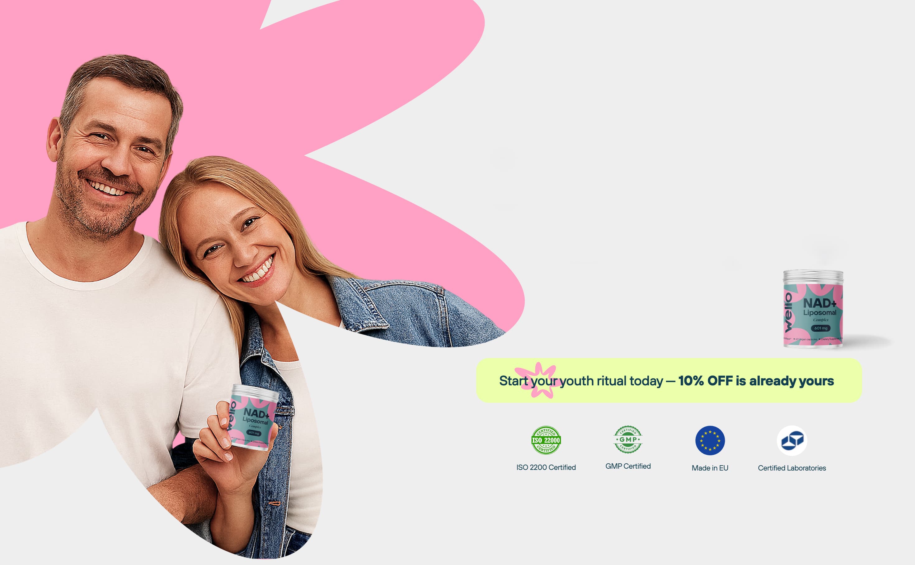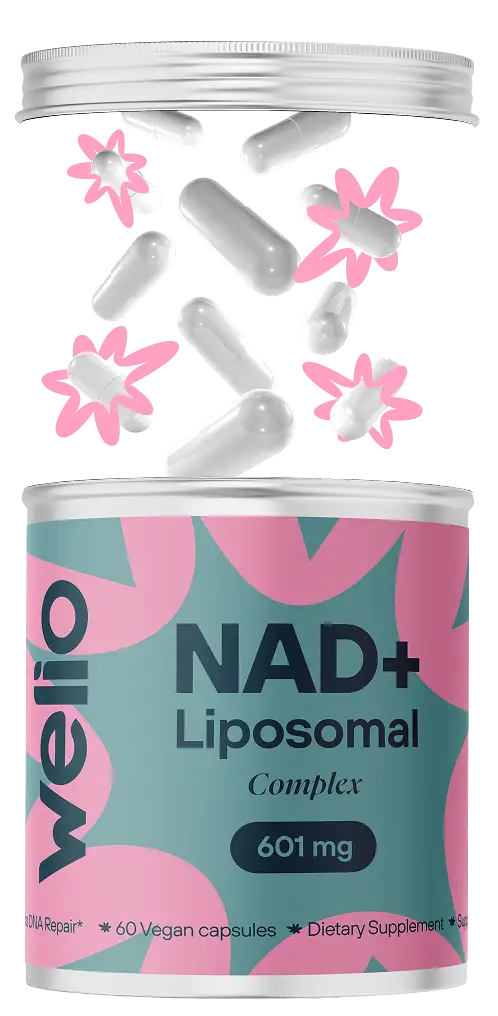 From your 30s, NAD+ levels naturally fall — and so do energy, clarity, and recovery. Welio helps support your healthy NAD+ levels with advanced liposomal delivery.*